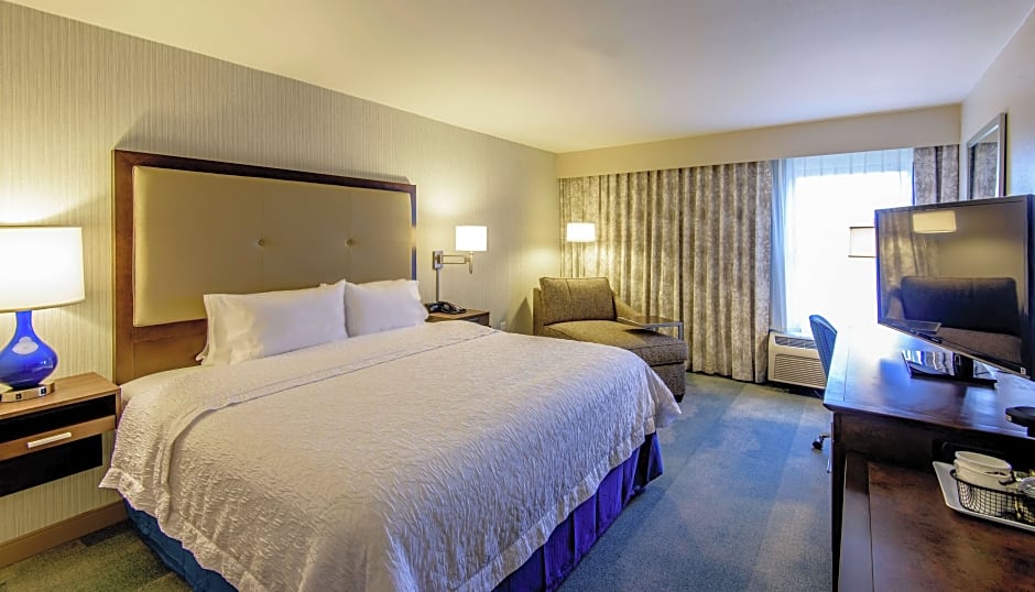 This room features a Hyatt Grand Bed, a flat-screen TV, refrigerator, Keurig coffee machiner and seating area.